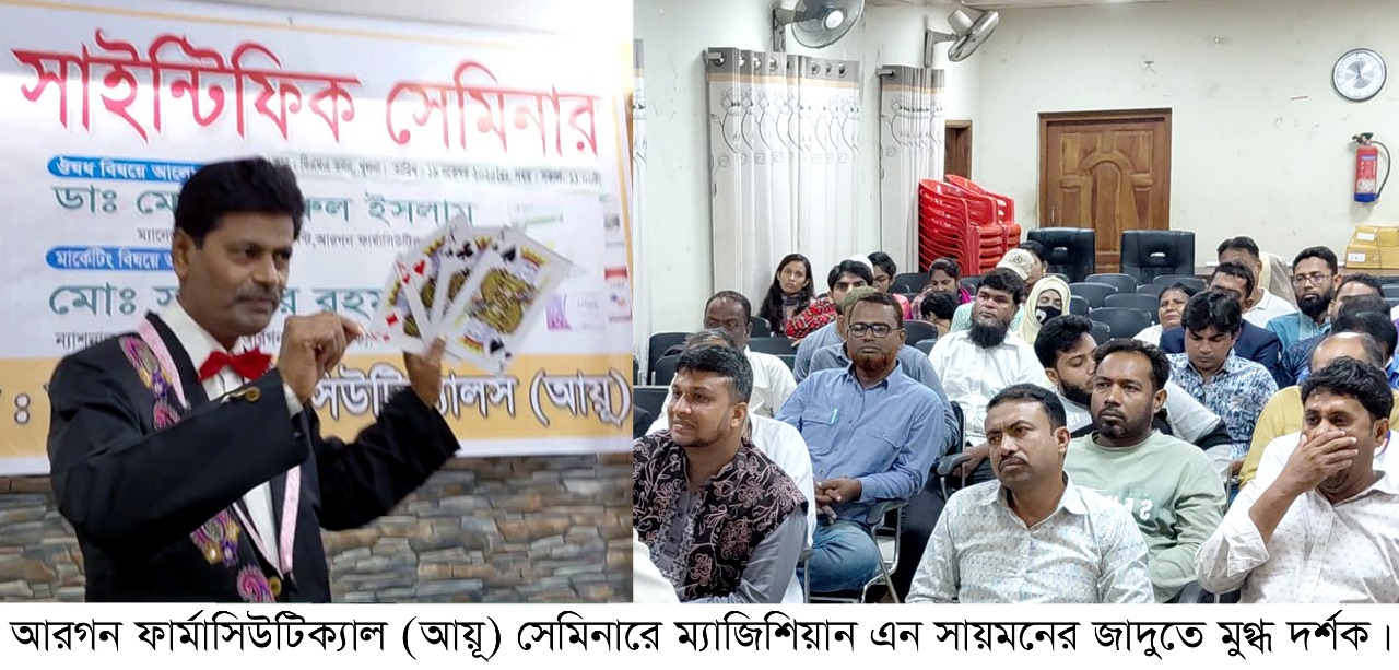 মো. সফিকুর রহমান, ন্যাশনাল সেলস ম্যানেজার, আরগন ফার্মাসিউটিক্যালস (আয়ূ)। সকাল ১০:৩০ মিনিটে শুরু হয়ে বেলা ২:০০টায় শেষ হওয়া এ সেমিনারের শেষে আয়োজিত হয় বিনোদন পর্ব। সেখানে প্রায় এক ঘণ্টাব্যাপী মনোমুগ্ধকর জাদু পরিবেশন করেন ব্রাইট স্টার ম্যাজিশিয়ান এন সায়মন, যা দর্শকদের মধ্যে আনন্দের ঝড় তোলে।জাদু পরিবেশনার সময় এন সায়মন বলেন, “জাদু কোন হাতের চালাকি নয়; প্রতিটি জাদুর পেছনে বিজ্ঞানের ব্যবহার রয়েছে। আজকের জাদু আগামী দিনের বিজ্ঞান। জাদুকে ভালোবাসলে মানুষের বুদ্ধিমত্তা আরও শক্তিশালী হয়।”জাদুকরের উপস্থাপনায় মুগ্ধ হলভর্তি দর্শক প্রাণভরে উপভোগ করেন পুরো ম্যাজিক শো।