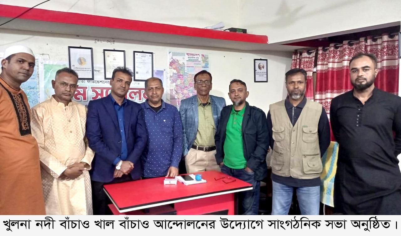 খুলনা অঞ্চলের নদী ও খাল দখল দূষণ, আইনগত জটিলতা এবং প্রয়োজনীয় করণীয় নিয়ে আলোচনার লক্ষ্যে খুলনা নদী বাঁচাও, খাল বাঁচাও আন্দোলন-এর উদ্যোগে বটিয়াঘাটার জলমা চক্রাখালী এলাকায় একটি গুরুত্বপূর্ণ সাংগঠনিক সভা ২১ নভেম্বর ২০২৫ তারিখে অনুষ্ঠিত হয়।সভায় সভাপতিত্ব করেন সংগঠনের সভাপতি, বিশিষ্ট আইনজীবী, পরিবেশবিদ ও মানবাধিকার কর্মী জনাব মোঃ মোস্তফা বিলাল। অনুষ্ঠান পরিচালনা করেন সংগঠনের সাধারণ সম্পাদক, বিশিষ্ট সংগঠক ও আইনজীবী শ্রী প্রসেনজিৎ দত্ত। সার্বিক সমন্বয়ের দায়িত্বে ছিলেন সংগঠনের সাংগঠনিক সম্পাদক, কবি ও সমাজকর্মী জনাব নাজমুল তারেক তুষার।বক্তারা তাদের আলোচনায় উল্লেখ করেন অনেক নদীর নাব্য সংকট, বর্ষায় জলাবদ্ধতা ও বন্যা, পরিবেশ দূষণ, জলবায়ুর নেতিবাচক প্রভাব, বিষ প্রয়োগে মৎস্য ও অন্যান্য প্রাণীর ক্ষতি, জল ও খাদ্য নিরাপত্তার হুমকি এসব সমস্যা সমাধানে আইনের যথাযথ তদারকি ও প্রয়োগ জরুরি। পাশাপাশি উপকূলবাসীর জীবনযাত্রায় ক্ষতিকর প্রভাব মোকাবিলা, টেকসই বেড়িবাঁধ নির্মাণ এবং বিজ্ঞানভিত্তিক গবেষণার প্রয়োজনীয়তার ওপর জোর দেন বক্তারা।এছাড়া ময়ূর, শৈলমারী, কপোতাক্ষসহ অসংখ্য নদী–খালের মৃতপ্রায় অবস্থা নিরসনে সরকারিভাবে কার্যকর উদ্যোগ গ্রহণ এবং জনসচেতনতা বৃদ্ধির প্রয়োজনীয়তার কথা আলোচনায় উঠে আসে।নদী–খাল দখলমুক্ত করতে আইনি কাঠামো আরও শক্তিশালী করা, তথ্য–উপাত্ত সংগ্রহ, মাঠপর্যায়ের তদন্ত কার্যক্রম এবং ভবিষ্যৎ আইনগত লড়াইয়ের কৌশল নিয়েও সভায় বিস্তৃত আলোচনা অনুষ্ঠিত হয়। পরিবেশ রক্ষায় বিচারিক প্রক্রিয়াকে আরও সক্রিয় ও গতিশীল করার আহ্বান জানান বক্তারা।সভায় উপস্থিত ছিলেন সংগঠনের যুগ্ম সাধারণ সম্পাদক ও সমাজসেবক জনাব ইয়ারুল ইসলাম সবুজ,নির্বাহী সদস্য জনাব মশিউর রহমান টুকু,নির্বাহী সদস্য জনাব আশরাফুল ইসলাম,নির্বাহী সদস্য মোঃ মুরাদ হোসেন,নির্বাহী সদস্য মোঃ আমানত,এবং অন্যান্য নেতৃবৃন্দ।