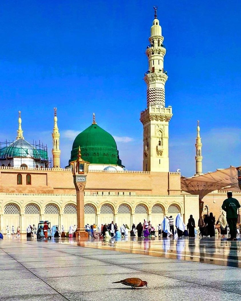 “পবিত্র স্থান, হে আল্লাহর রাসূল, পবিত্র স্থান, হে আল্লাহর প্রিয়জন, যেদিন আমি আপনার কাছে এসেছিলাম, সেদিন আমার চোখ আকুলতায় ভরে গিয়েছিল” (পবিত্র স্থান, হে আল্লাহর রাসূল, আমি আপনার আশ্রয় প্রার্থনা করছি, হে আল্লাহর প্রিয়জন, আমি খালি পায়ে আপনার আশ্রয় প্রার্থনা করছি...)