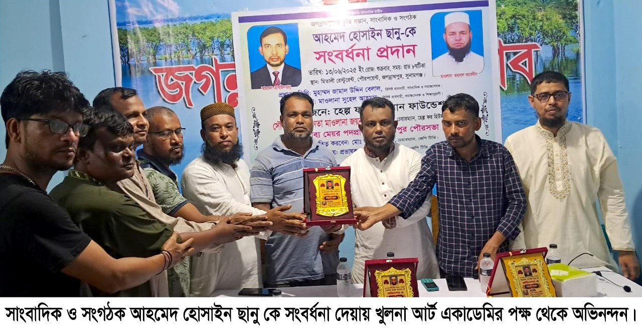 সাংবাদিক ও সংগঠক আহমেদ হোসাইন ছানু কে সংবর্ধনা দেয়ায় খুলনা আর্ট একাডেমির পক্ষ থেকে অভিনন্দন