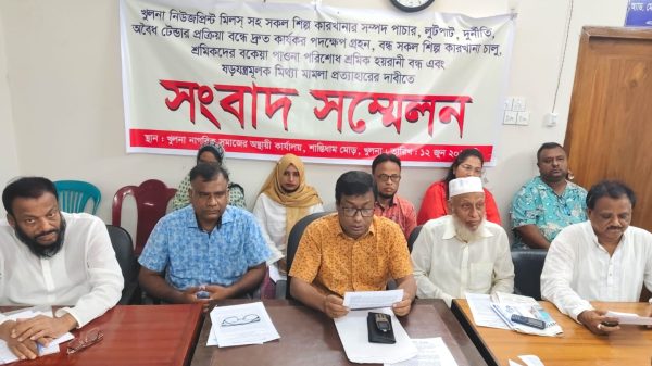 নিউজপ্রিন্ট মিলস সহ সকল শিল্প-কারখানার সম্পদ পাচার, লুটপাট, দুর্নীতি ও অবৈধ টেন্ডার প্রক্রিয়া বন্ধ, বন্ধ সকল শিল্প-কারখানা চালু, শ্রমিকদের বকেয়া পাওনা পরিশোষ এবং শ্রমিক হয়রানি বন্ধের দাবীতে খুলনা নাগরিক সমাজের